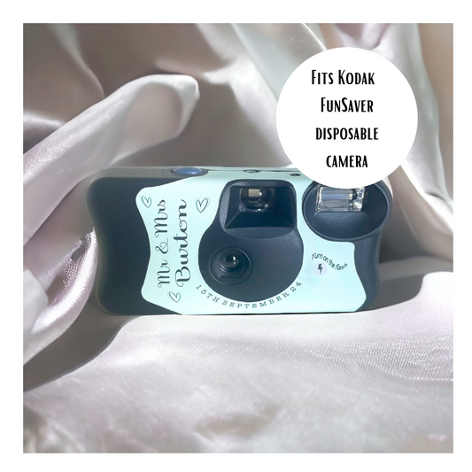 Each camera wrap is custom designed to fit disposable cameras and personalised with your names, wedding date, or a meaningful phrase. Perfect as wedding table favours or camera station details, these wraps help create a relaxed, phone-free atmosphere while capturing the moments you might otherwise miss.