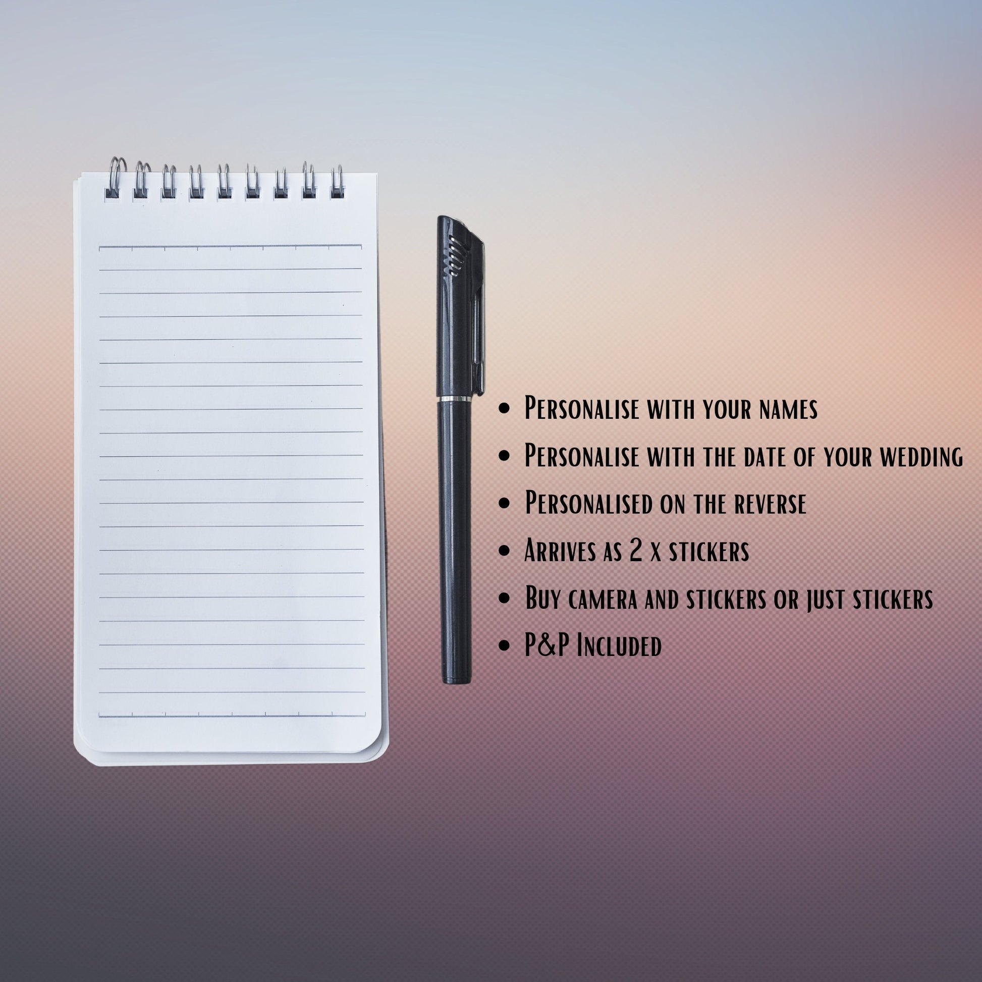 The stickers will be personalised with the names of the happy couple together with the date of the wedding to the front and the reverse.