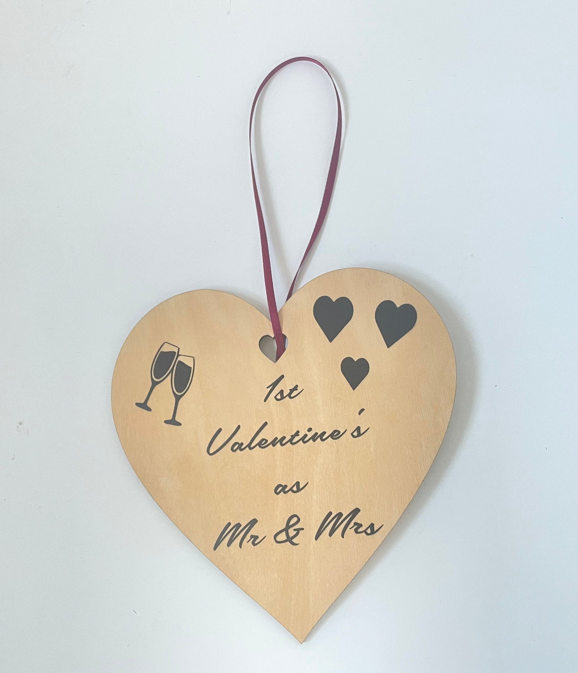 Make this Valentine's Day extra special with our wooden hanging heart decoration. This heart is the perfect way to celebrate your first Valentine's Day as Mr. and Mrs. and is made from high-quality wood, featuring a premium black vinyl design applied using heat transfer technology, to make a longer lasting gift.